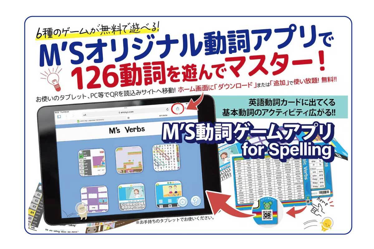 【M's 動詞ゲームアプリfor Spelling】20枚セット